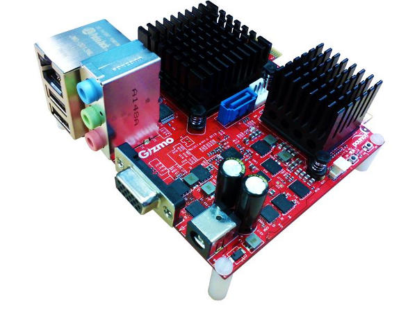 The board is from an organization called GizmoSphere, you have probably never heard of them because they only officially exist as of this release. Take an AMD G-T40E, a dual core Brazos at 1GHz with a 280MHz GPU of unknown shader count, AMD’s docs are woefully inadequate here, and slap it on tiny a passively cooled board. Solder down 1GB of 1066MHz DDR3, add a single SATA port, VGA, 2 USB2, audio, Ethernet, plus two custom IO connectors, one high and one low speed, and you have most of it. The finished board looks like this.